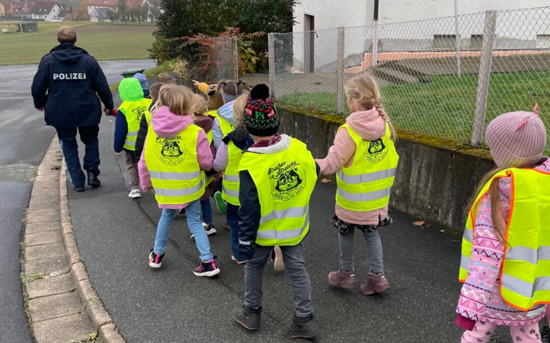 Die 1. Klasse hat von Herrn Götz von der Polizei Ebermannstadt wichtige Informationen erhalten, wie man sicher den Schulweg zu Fuß oder mit dem Bus meistern kann.